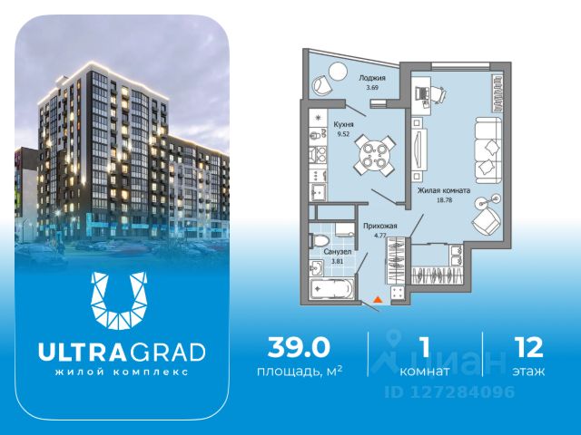 Продаётся 1-комнатная квартира в строящемся доме (дом 6), срок сдачи: IV-кв. 2027, общей площадью 42.7 кв.м., на 12 этаже. Расположение, транспортная доступность