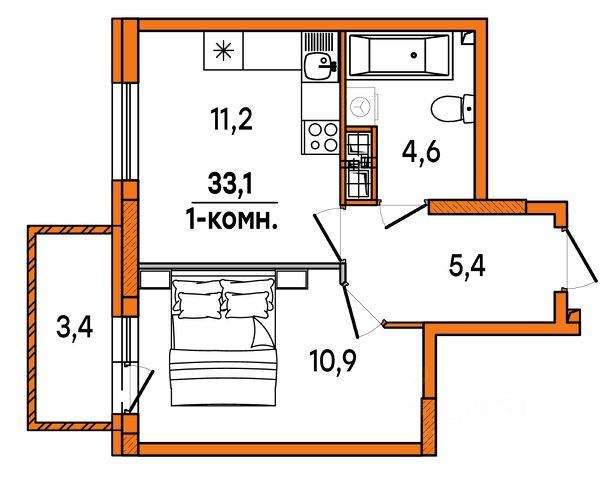 Продаётся 1-комнатная квартира в строящемся доме (дом 6), срок сдачи: IV-кв. 2027, общей площадью 33.1 кв.м., на 13 этаже. Расположение, транспортная доступность