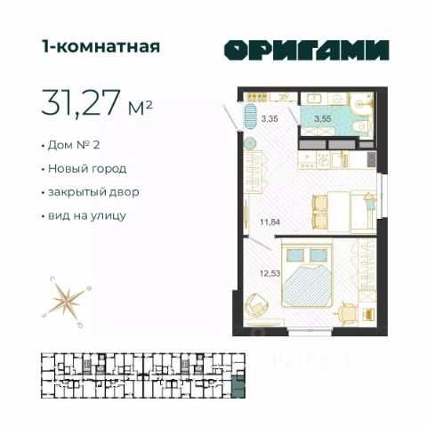 Продаётся 1-комнатная квартира в строящемся доме (дом 6), срок сдачи: IV-кв. 2027, общей площадью 33.1 кв.м., на 13 этаже. Расположение, транспортная доступность