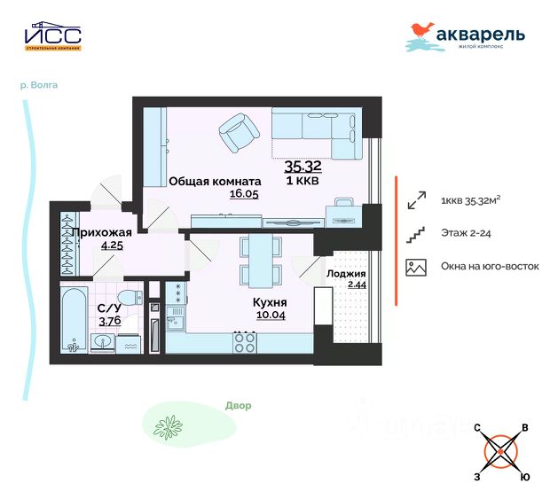 Продаётся 1-комнатная квартира в строящемся доме (дом 6), срок сдачи: IV-кв. 2027, общей площадью 42.7 кв.м., на 5 этаже. Расположение, транспортная доступность