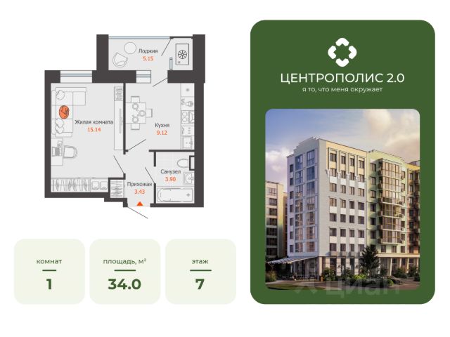 В Заволжском районе Ульяновска продается 1-комнатная квартира площадью 33.00 кв. м. Квартира расположена на 7 этаже 9 корпуса в жилом комплексе CENTROPOLIS 2.0 ("Центрополис 2.0"). CENTROPOLIS 2.0 ("Центрополис 2.0") - новый перспективный проект, который является логичным продолжением уже знакомого проекта от ГК "Железно" CENTROPOLIS. Расположенный на берегу Волги, комплекс имеет отличную транспортную доступность и инфраструктуру на уровне центра города. Архитектура Архитектурная концепция "Центрополис 2.0" - еще более современного прочтения, чем у "Centropolis". На фасадах присутствует многообразие форм, текстур и фактурных материалов, для отделки использована благородная штукатурка, что придает комплексу одновременную простоту и элегантность. Доказано, что архитектура влияет на эмоциональное состояние человека и формирует его мировоззрение - именно поэтому облик нового "Центрополиса" продуман до мелочей. Входные группы Уникальная особенность общественных пространств - инновационный подход к оформлению интерьера. В МОПы внедрен салютогенный дизайн, направленный на улучшение здоровья и самочувствия людей. Максимум дневного света, свежий и чистый воздух, нейтральная цветовая гамма с акцентами в природных тонах и минимализм в интерьере создают атмосферу порядка, структуры и понятности. Благоустройство По задумке авторов проекта, в основе благоустройства лежит концепция "Острова", где дворы символизируют ландшафтные регионы России, объединенные единой артерией -рекой вдоль центральной аллеи. Каждый двор соответствует уникальной тематике, многоуровневое освещение создает атмосферу уюта. Тихие зоны отдыха украшает всесезонное озеленение и геопластика холмов, в активных зонах - протяженные велодорожки, площадки для командных игр и прочное оборудование в природной гамме. В уютных двориках расположены площадки для самых маленьких, а в ландшафтных аллеях - зоны для детей среднего и старшего возраста. Инфраструктура Комплекс расположен в экологически чистой зоне центра Нового города, в шаговой доступности - Прибрежный парк и живописный берег Волги. Район обеспечен всей необходимой инфраструктурой, достаточно нескольких минут, чтобы дойти до детского сада, лицея, супермаркета или салона красоты. Продается 1-комнатная квартира в новостройке в микрорайоне Новый Город в городе Ульяновск.