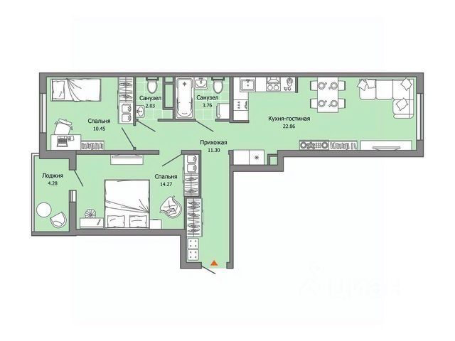 ЖК ЭЛЕМЕНТ Уютная квартира с функциональной планировкой и просторной лоджией Квартира сдается в базовой отделке: готова стяжка пола и установлены счетчики, лоджии остеклены и заведен кабель для подключения интернета. Качественные металлические входные двери с надежной фурнитурой. Дополнительно вы можете выбрать любой вид отделки от застройщика — "whitе bох" или "whitе bох PRO" с полностью готовым санузлом, а также "под ключ" в стиле Утро или Вечер. Все подъезды оборудованы колясочными и бесшумными лифтами. Безбарьерная среда и лифт с нулевой отметки — идеально для перевозки велосипедов и колясок. - дизайнерские холлы с прозрачными входными группами - семейный подъезд с тремя просторными квартирами на площадке - освещение от датчиков движения. Двор с изюминкой Вертикальная детская площадка с полимерным покрытием, многоуровневое озеленение, мягкое освещение, беседка с чайной зоной для отдыха. Закрытая территория! Все рядом 44-я и 59-я гимназии, 42 и 22 школы 3 детских сада и детская поликлиника школа искусств и 2 спорткомплекса парк культуры имени 40-летия ВЛКСМ супермаркеты "Магнит" и "Пятерочка". Данная квартира располагается на 8-м этаже в 3-м подъезде. Купить 2-комнатную квартиру в новостройке с большой кухней в Ульяновске.