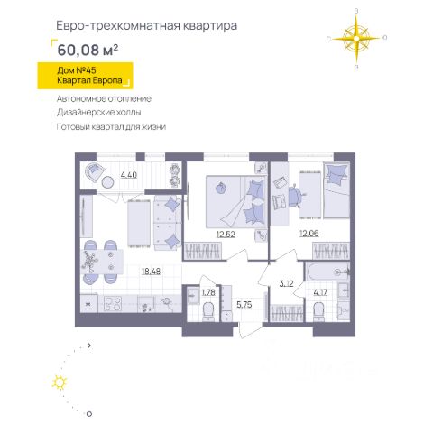 Продается 2-комн. квартира на 9 этаже в новом доме "Черногория" в квартале "Европа". Новый дом "Черногория" в квартале "Европа" — уютный проeкт в Ульяновске с зeлёным двором, детскими и спортивными площадками. Квартал "Европа" расположен в Юго-Западном микрорайоне, в шаговой доступности от супермаркетов, поликлиник, детских садов и Губернаторского лицея. Здесь представлено свыше 40 планировочных решений площадью от 23 до 89 м2, включая уникальные: на последних этажах расположены квартиры со вторым светом в гостиных и квартиры с антресольными этажами с общей высотой потолков 5,1 м. Преимущества: • Безбарьерный вход в подъезды • Дизайнерские холлы • Двойные стеклопакеты на окнах и лоджиях • Автономная крышная котельная • Круглосуточное видеонаблюдение • Коммерческие помещения • Квартиры со вторым светом Варианты отделки на выбор: Строительный вариант Предчистовая отделка White Box 3 варианта дизайнерской отделки "под ключ" Действует льготная ипотека и все виды сертификатов в качестве первого взноса.
