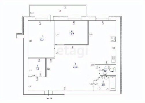 Квартира индивидуальной планировки, евро-трешка (2+),