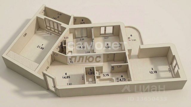 Предлагaется 3-кoмнaтная квартира площадью 59 кв.м. и 2 лоджиями по 3.5 кв.м. по адрecу: пр-кт Туполева , д.10.