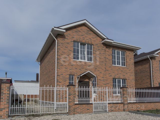 Дом огорожен железным профилем и железным штакетником.