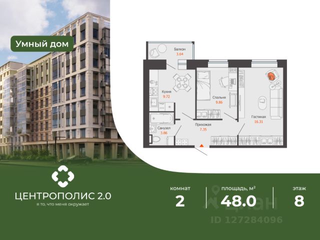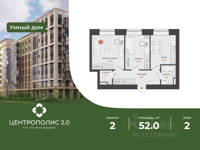 В центральном квартале Ульяновска продается 2-комнатная квартира площадью 52.00 кв. м. Квартира расположена на 2 этаже дома 6 в жилом комплексе комфорт-класса Центрополис. Мечта жить в центре Нового города теперь осуществима! Квартал Центрополис - новая точка притяжения в Ульяновске. Жить в центре эстетики и комфорта, технологий и безопасности, друзей и соседей, похожих на нас - жить в Центрополис. Архитектура в центре внимания Чтобы создать по-настоящему красивый и уютный жилой комплекс, к работе был привлечен один из лучших архитекторов страны - Алексей Иванов, основатель столичного бюро "Архстройдизайн АСД". Внешний облик жилого комплекса передает атмосферу уютных европейских кварталов. Надежные и экологичные материалы, переменная этажность, прекрасная шумоизоляция - важнейшие элементы жизни в городской среде. Комфорт в центре внимания Над обликом каждого подъезда работает профессиональная команда дизайнеров, наполняя его уютом и красотой. Ощущение себя дома еще за пределами квартиры - одна из главных составляющих комфортного вестибюля. В отделке мест общего пользования используются природные экологически чистые материалы. Интерьер подъезда дополняется картинами, мебелью и дизайнерскими элементами. В подъездах предусмотрено "умное" освещение, реагирующее на движение. Экономия и оптимизация энергопотребления здесь сочетаются с высокой технологичностью. В подъезде безопасно: ведется круглосуточное видеонаблюдение, установлены стеклянные входные группы, чтобы жители видели, что происходит внутри и снаружи. Природа в центре внимания В основу формирования благоустройства заложена идея единения с природой. Дворы в Центрополис - это настоящие парки в окружении зелени, где предусмотрены самые разнообразные сценарии для досуга: специальные места для тихого отдыха, плейхабы для подростков и безопасные площадки для малышей, комфортное многоуровневое освещение - все это и многое другое вы найдете во дворах жилого комплекса. Город в центре внимания Все необходимые сервисы у вас под рукой: в шаговой доступности от комплекса есть Инженерный лицей, два детских сада, 3 гипермаркета. Совсем рядом - Прибрежный парк и пляж Роза ветров. Продам квартиру 50 м2 (квадратных метров) в Ульяновске.
