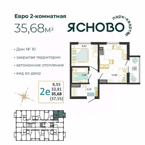 ЖК ЯСНОВО Дом 3.2 ДОМ СДАН! Просторная квартира с функциональной планировкой без "лишних" квадратных метров. Квартира сдается в базовой отделке: готова стяжка пола и установлены счетчики, лоджии остеклены и заведен кабель для подключения интернета. Качественные металлические входные двери с надежной фурнитурой. Дополнительно вы можете выбрать любой вид отделки от застройщика — "whitе bох" или "whitе bох PRO" с полностью готовым санузлом, а также "под ключ" в стиле Утро или Вечер. На первых этажах расположены просторные колясочные и велосипедные, все подъезды оснащены видео-домофонной связью, вход в подъезд осуществляется с помощью смарт-ключа. Есть возможность купить кладовую на своем этаже для хранения сезонных вещей. Крышная котельная - это значительная экономия на коммунальных платежах и доступ к горячей воде круглый год. Закрытая территория с видеонаблюдением и пунктом охраны. Через весь микрорайон проходит живописный зеленый бульвар. Продуманный ландшафт, уютные лаунж-зоны, специально оборудованная площадка для выгула собак. Все необходимое рядом: гипермаркет "Лента" строительный магазин "Леруа Мерлен" строится новый физкультурно-оздоровительный комплекс "Ясново. На спорте" в перспективе - школа, детские сады и поликлиники Квартира находится на 1 этаже в 1 подъезде