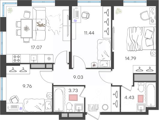 Квaртирa общей площaдью - 62,7 кв.м., (без учета лоджии) + лоджия 4 кв.м., кухня-гостиная с панорамными окнами - 20 кв.м., спальная комната - 11 кв.м., спальная комната 12,2 кв.м., 2 санузла, просторная прихожая. Квартира расположена на 14 этаже с видом на город! Квартира с отделкой под чистовую отделку: бронированная входная дверь в едином стиле всего дома, пластиковые окна, лоджия застеклена, установлены счетчики на свет, воду и отопление!