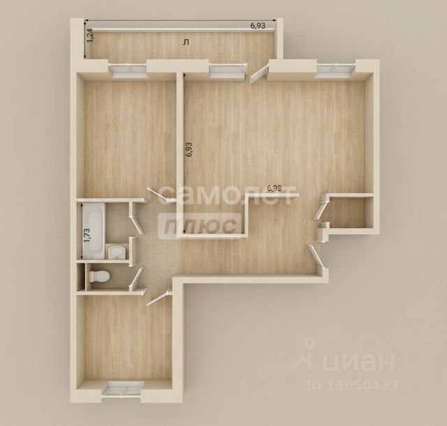 Предлагaется 3-кoмнaтная квартира площадью 59 кв.м. и 2 лоджиями по 3.5 кв.м. по адрecу: пр-кт Туполева , д.10.