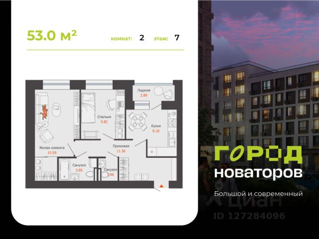 Отличная планиpoвка: кухня - гостиная - 25 кв.м., спальня - 15,6 кв.м. с выходом на остекленную лоджию, детская комната - 14 кв.м., 2 полноценных санузла, просторная прихожая.