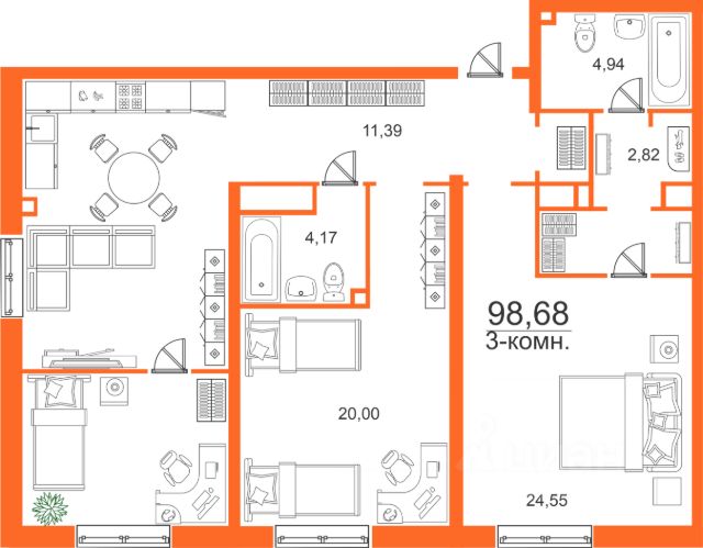 Продаётся 1-комнатная квартира в строящемся доме (дом 6), срок сдачи: IV-кв. 2027, общей площадью 33.1 кв.м., на 11 этаже. Расположение, транспортная доступность