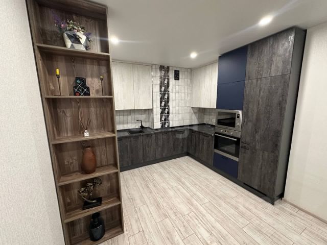 Кухня просторная 12 метров с встроенным кухонным гарнитуром.