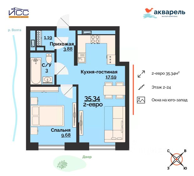 Продаётся 2-комнатная квартира в строящемся доме (дом 4А), срок сдачи: I-кв. 2027, общей площадью 35.34 кв.м., на 20 этаже. Многоквартирный жилой дом, расположенный по адресу: г. Ульяновск, проспект Врача Сурова, 2А.