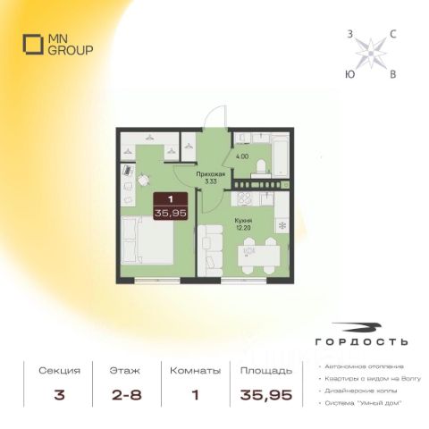Продается 3-комн. квартира комфорт-класса на 5 этаже в жилом комплексе Гордость на Ленкома Новый проект "Гордость", созданный командой MN Group — видовой комплекс в Заволжском районе Ульяновска, состоящий из нескольких секций переменной этажности от 9 до 19 этажей. Проект расположен на проспекте Ленинского Комсомола одном из главных проспектов района. Преимущества: Панорамные виды на Волгу Автономное отопление Двор без машин Усиленная шумоизоляция пола Горизонтальная разводка Разнообразие планировочных решений Закрытая территория с видеонаблюдением 24/7 Система Умный дом Для удобства жителей и гостей в каждом холле оборудованы комфортные зоны ожидания, лапомойки для питомцев, велосипедные и колясочные. На внутренней территории жилого комплекса предусмотрен закрытый двор c зонами для работы и отдыха, спортивными и детскими площадкми. Продуманный ландшафтный дизайн с разнообразными растениями создаст дополнительный уют на территории двора. Благодаря сквозным подъездам легко попасть на улицу и двор. На первых этажах жилого комплекса появится собственная инфраструктура для офисов и street-retail. Варианты отделки на выбор: Строительный вариант Предчистовая отделка White Box 3 варианта дизайнерской отделки "под ключ" О жителях и доме будет заботиться управляющая компания MN Service. В проекте действуют выгодные условия покупки! Подробнее о предложении — в офисе отдела продаж.
