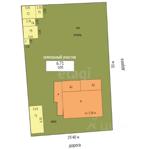 Площадь земельного участка - 10 соток. Участок ровный, не подтапливается, плодородная земля.