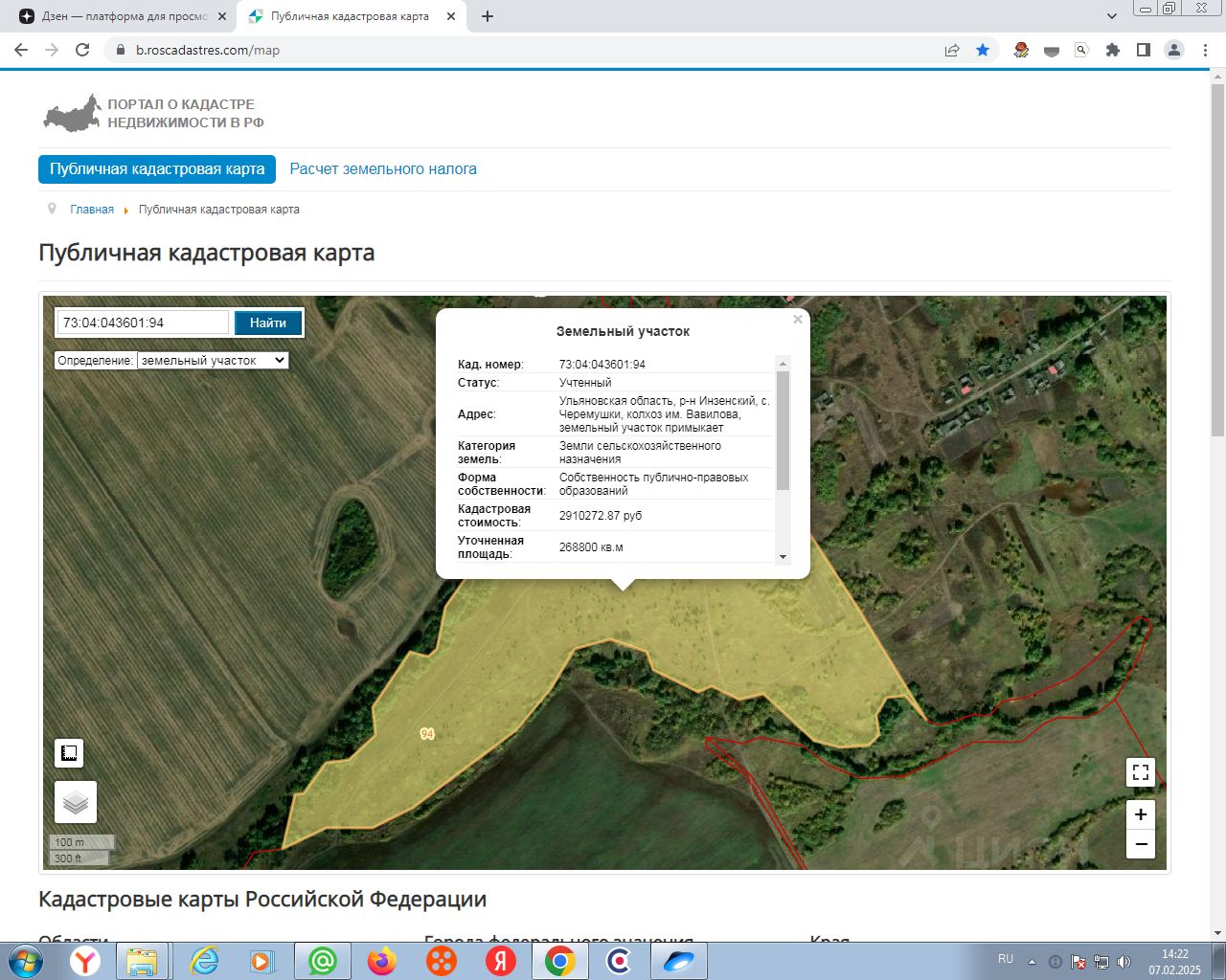 Земельный участок, с кадастровым номером 73:04:043601:94, категории земель: земли сельскохозяйственного назначения, вид разрешенного использования: для сельскохозяйственного использования, общая площадь: 268800 кв.м.