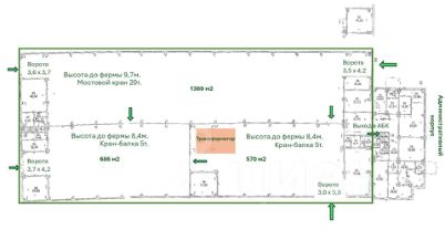 Высота до фермы 8,4 м, Кран-балка 5т.