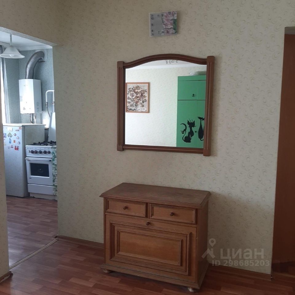 Есть всё необходимое для проживания: диван, шкаф, холодильник, стиральная машина, комодик, зеркало. Квартира простая, но всё есть необходимое, цена реальная.