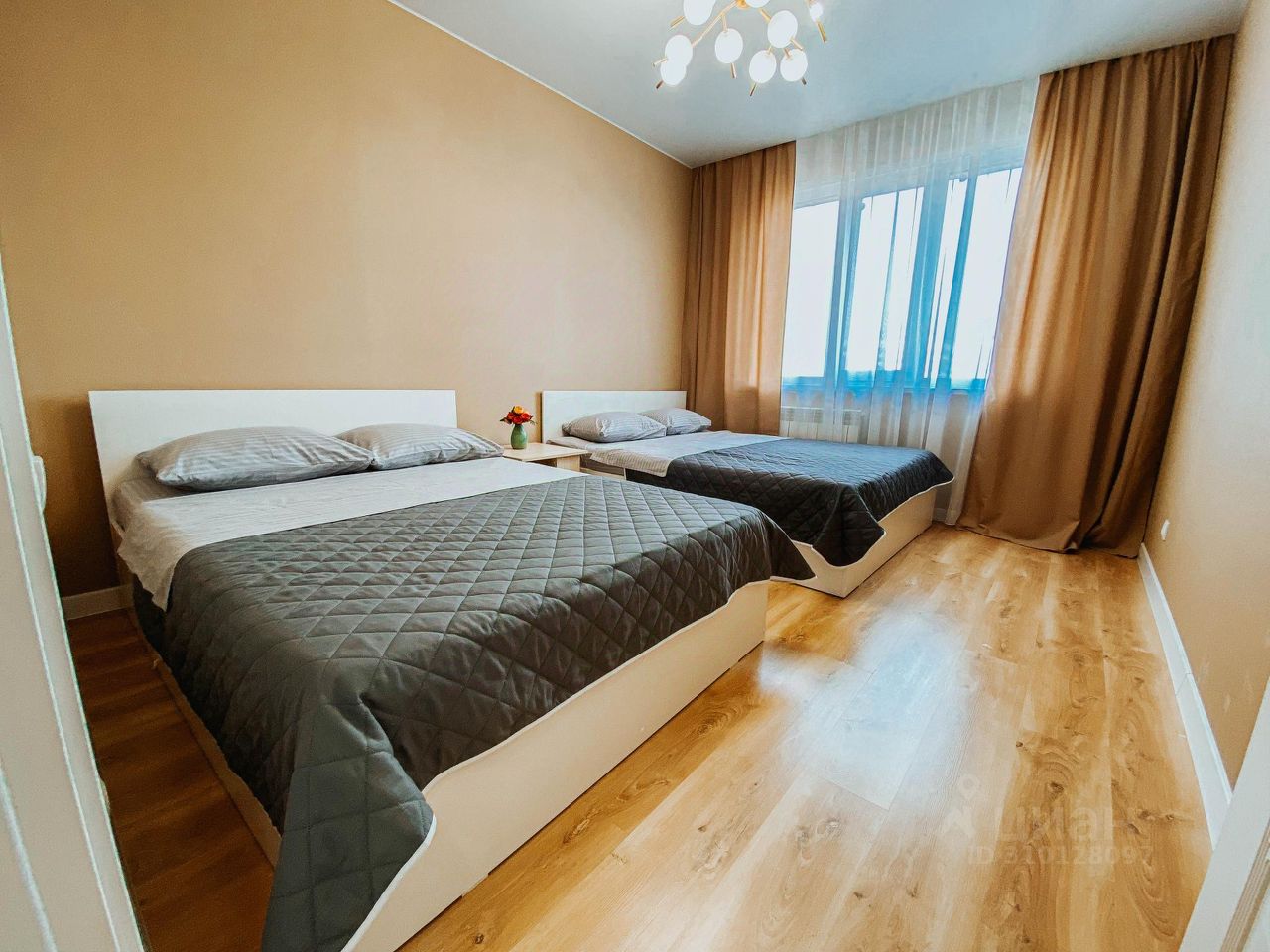 Квартира оснащена: тремя комфортабельными двуспальными кроватями, заправлены чистым бельем из прачечной, раскладными диваном для двух гостей..