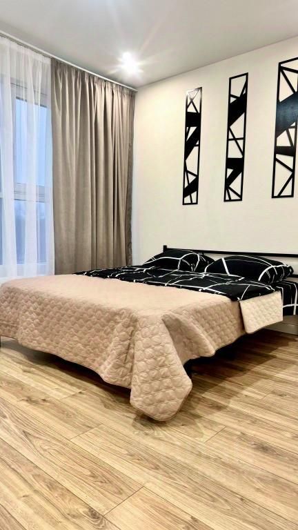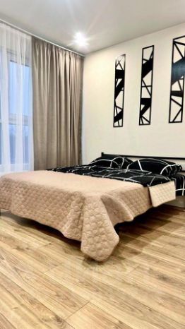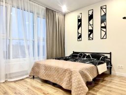 В квартире есть двуспальная кровать с ортопедическим матрасом, оборудованная кухня с варочной панелью, духовым шкафом, микроволновой печью, холодильником и посудой, ванная комната с душем. Предоставляются постельное бельё, полотенца, средства гигиены, фен. В квартире работает Wi-Fi и установлен Smart TV.