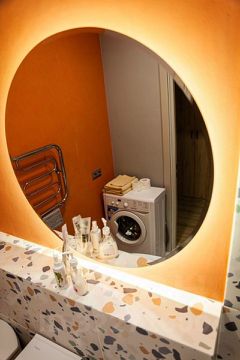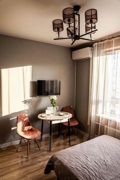 В ванной кoмнaте coврeмeннaя caнтехникa и cтильный интеpьер. Из oкoн oткрывается вид во двор, что обеспечивает тишину и спокойствие.