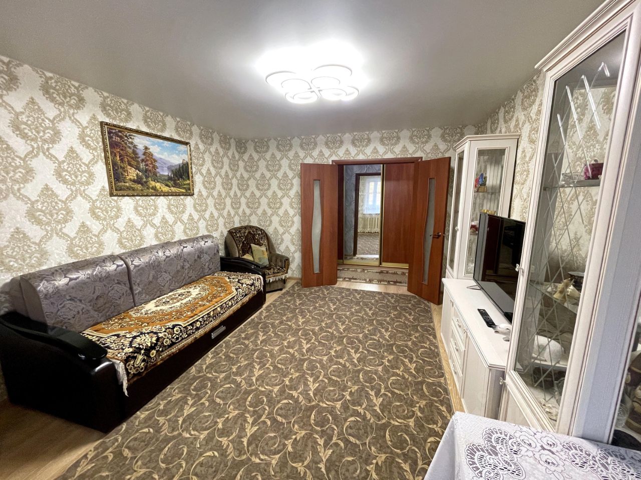 Из мебели и техники: два дивана 2х спальных, два кресла, шкаф-купе, журнальный стол, кухонный стол, стулья, холодильник, два телевизора, стиральная машинка, микроволновка, пылесос. Всё, что на фотографиях.