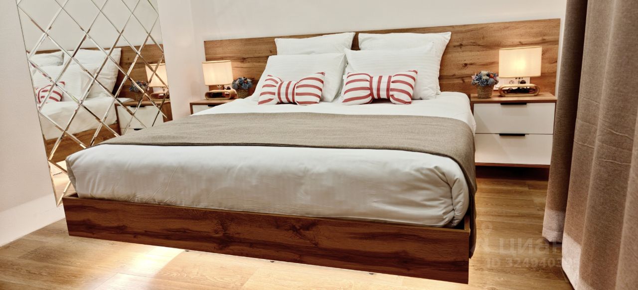 В квартире установлен кондиционер и просторная двуспальная кровать так же удобный диван и обеденный стол с креслами.