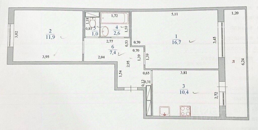 - Просторная кухня площадью 10.4 м², оборудованная новым современным гарнитуром, качественной бытовой техникой (варочной поверхностью, электрическим духовым шкафом, СВЧ, холодильником). Из кухни открывается доступ на шестиметровую благоустроенную лоджию, идеальное пространство как для отдыха, так и для хранения различных предметов.