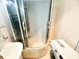 - Раздельный санузел обеспечивает дополнительные удобства для большой семьи. Ванная комната оборудована удобной душевой кабиной и современной стиральной машиной.