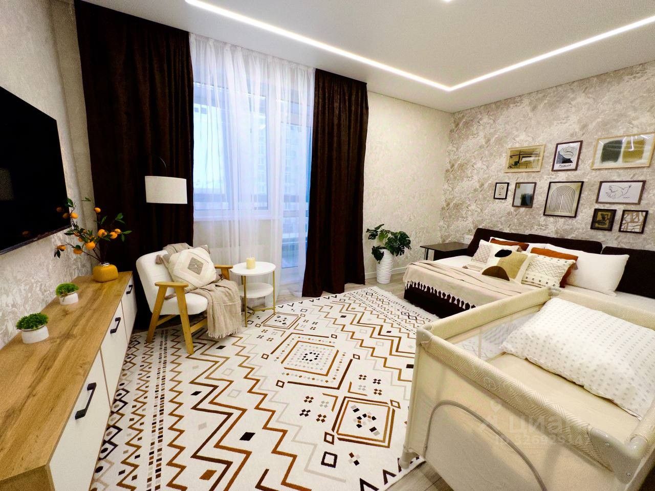 Квартира в скандинавском стиле для уютных вечеров перед большим телевизором. Мы работаем круглосуточно и всегда быстро отвечаем на заявки. Бесконтактное заселение. Предоставляем отчётные документы.