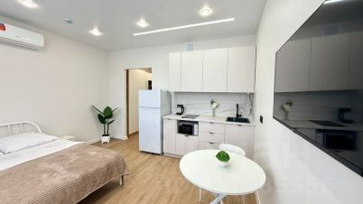 Уютная, светлая студия в новом доме в закрытом жилом комплексе "Европа" (дом Сербия) оборудованная всем необходимым: кровать, кондиционер, кухонный гарнитур, набор посуды и постельного белья, телевизор, Wi-Fi, холодильник, стиральная машинка-автомат, СВЧ, чайник, фен, утюг, гладильная доска, сушилка для белья.