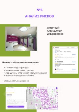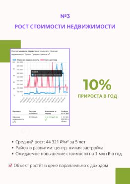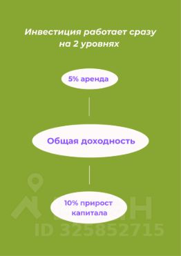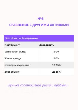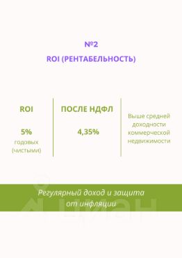 ROI 5% (рентабельность инвестиций) выше средней доходности коммерческой недвижимости