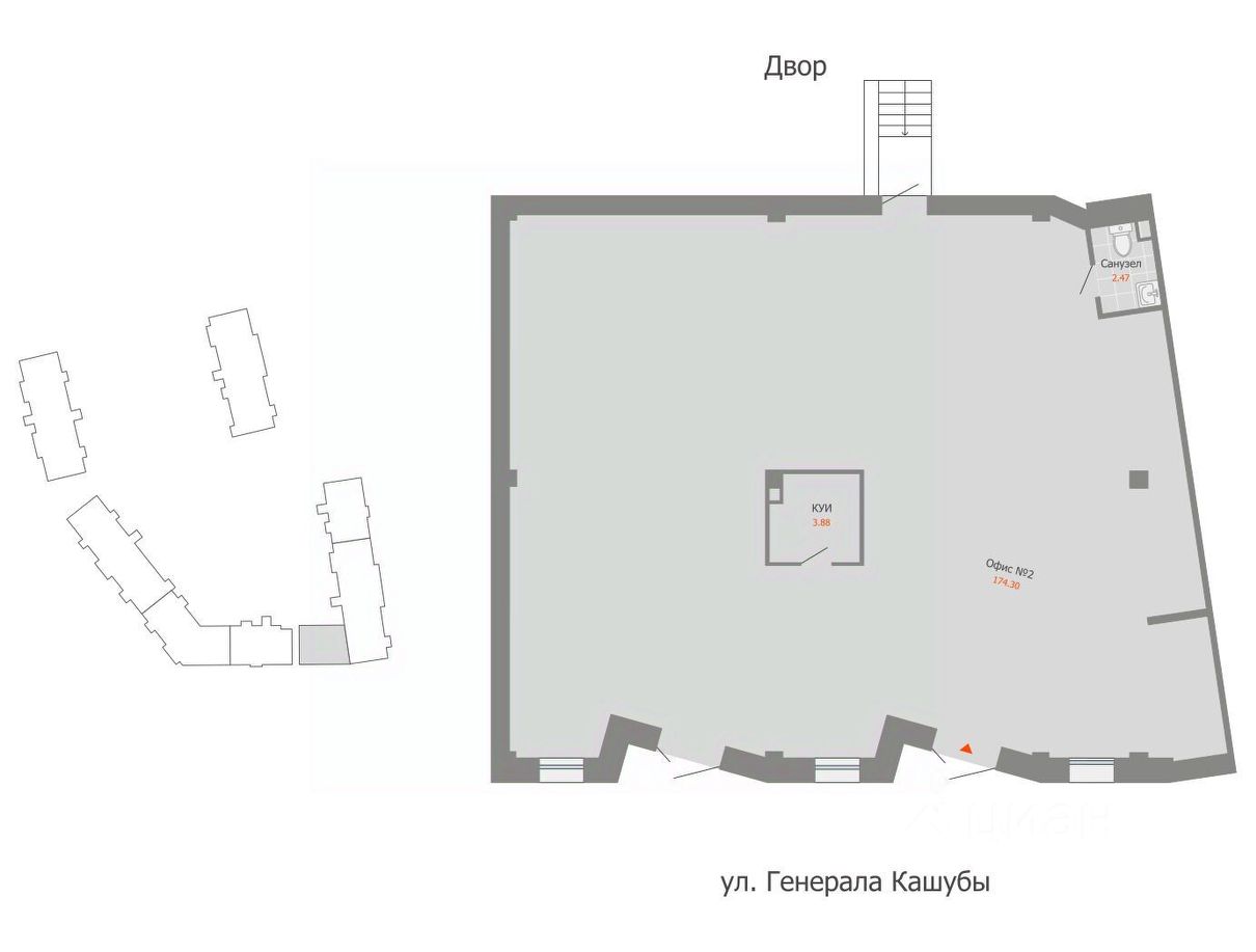 Помещение идеально подойдет под студию, офис, мини-маркет, кофейню, салон красоты или любой локальный сервис.