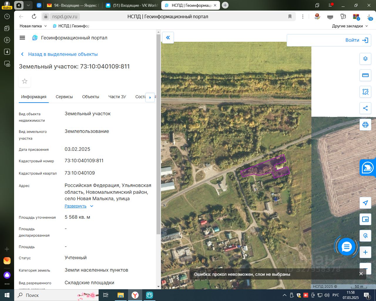Земельный участок общей площадью 5568 кв.м., кадастровый номер 73:10:040109:811, расположенный по адресу: Российская Федерация, Ульяновская область, Новомалыклинский район, с. Новая Малыкла, ул. Кооперативная, категория земель: земли населенных пунктов, разрешенное использование: складские площадки