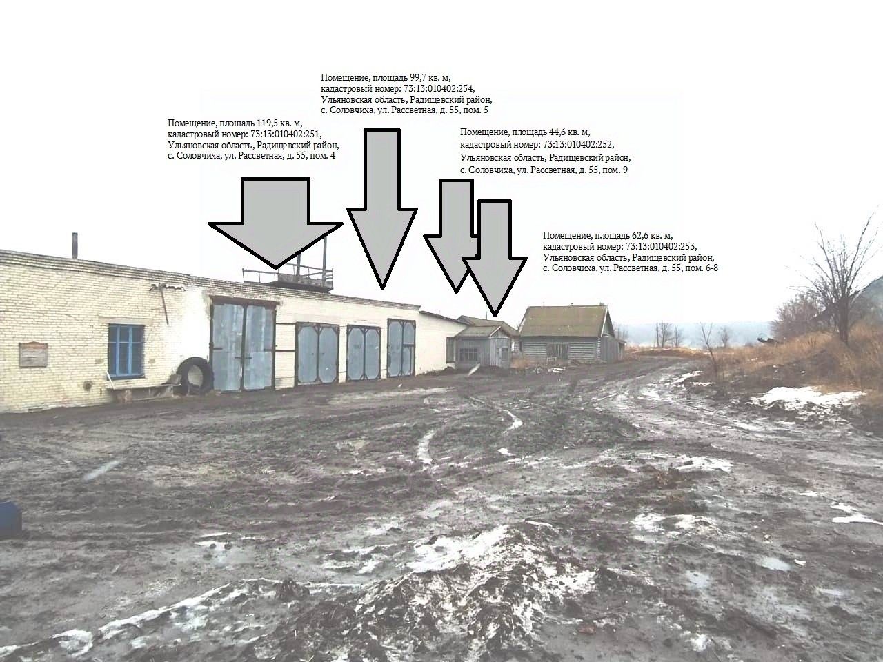 Помещение, назначение: нежилое, номер тип этажа, на котором расположено помещение: Этаж 1, площадь 99,7 кв. м, кадастровый номер: 73:13:010402:254, адрес: Ульяновская область, р-н Радищевский, с. Соловчиха, ул. Рассветная, д. 55, пом. 5, находящееся в собственности Ульяновской области, о чем в Едином государственном реестре недвижимости 13.04.2018 сделана запись о регистрации 73:13:010402:254-73/006/2018-1