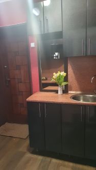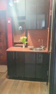 Продаётся однокомнатная квартира площадью 23.4 кв м, переделанная на двухкомнатную в хорошем состоянии. Комнаты смежные с отдельными пластиковыми окнами, выходящими на солнечную сторону. Санузел совмещенный. В прихожей- кухне есть все необходимое (шкафы, мойка, холодильник, полноценная электрическая плита с духовкой, стиральная машина). В комнате имеется кондиционер (необходима чистка). Горячая вода от водонагревателя. Имеется общая кухня в общем коридоре, но в ней необходимости нет т.к. все необходимое имеется в квартире. В общем коридоре 4 квартиры вместе с нашей, соседи молодые семьи, непьющие. Никого не видно и не слышно на этаже, по факту живут только в нашей и в соседней. Развитая инфраструктура. Низкие коммунальные платежи. Все что на фото остается будущим хозяевам, включая стиральную машину (на фото нет).