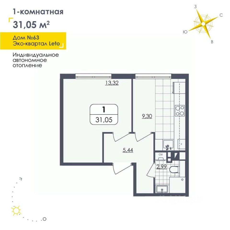 Продается 1-комн. квартира на 1 этаже в 63 доме в малоэтажном квартале LETO.