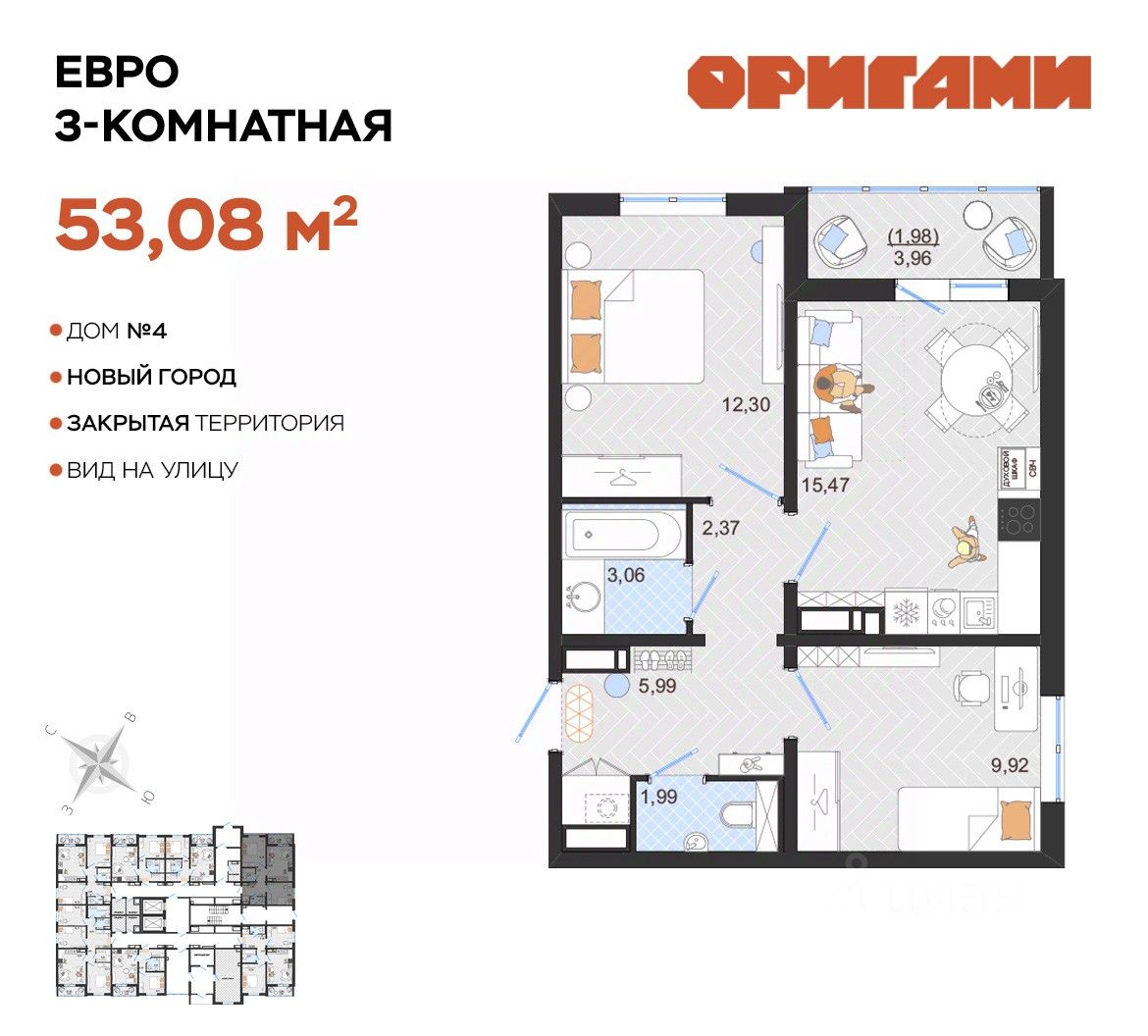 Комфортная квартира с грамотной планировкой: разумное расположение комнат и просторная кухня гостиная. Отделка "под ключ" от застройщика.
