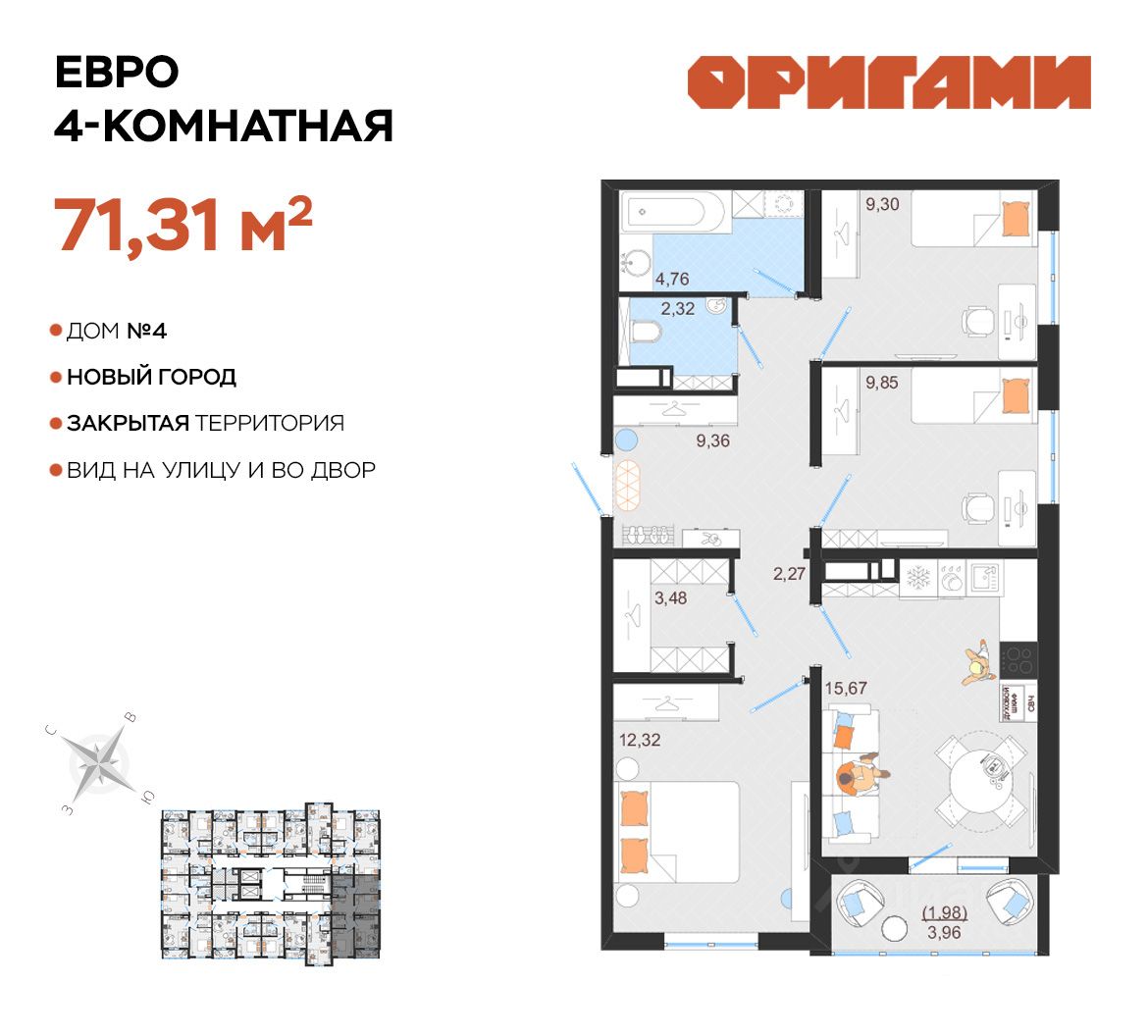 Закрытый двор с видеонаблюдением, парковки за пределами двора, грамотное и продуманное зонирование: