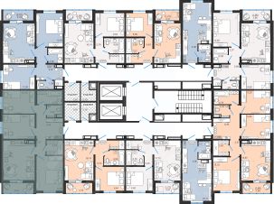 Современные и стильные подъезды с яркими дизайнерскими холлами и качественной отделкой. В каждом подъезде оборудованы просторные колясочные, велосипедные и лапомойки для домашних питомцев.