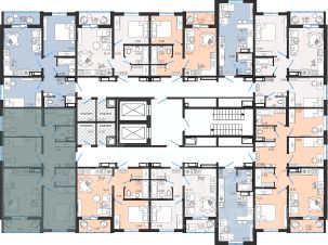 Современные и стильные подъезды с яркими дизайнерскими холлами и качественной отделкой. В каждом подъезде оборудованы просторные колясочные, велосипедные и лапомойки для домашних питомцев.