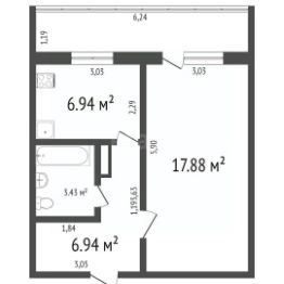 Планировка продумана для комфортного проживания. Просторная комната 18,5 кв. м правильной квадратной формы соединена с 6-метровой лоджией, что создает ощущение дополнительного простора и обеспечивает хорошее естественное освещение. Кухня 8,4 кв. м оборудована практичным кухонным гарнитуром, позволяющим удобно организовать пространство для приготовления пищи. Санузел 3,5 кв. м отделан кафельной плиткой, что гарантирует долговечность и простоту в уходе.