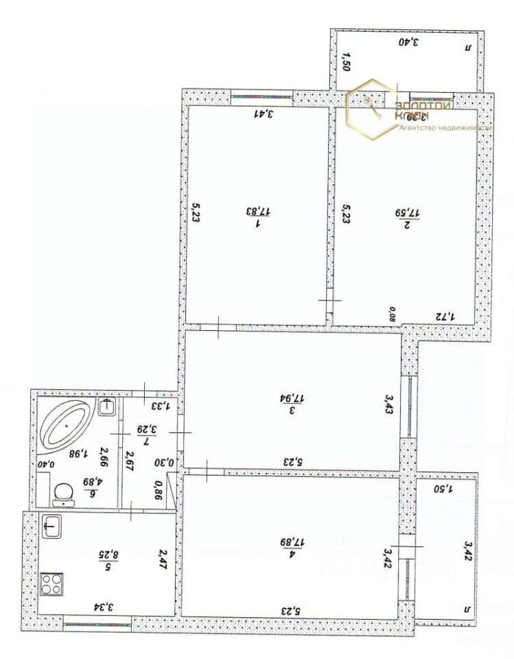 Общая площадь -87.7 м.