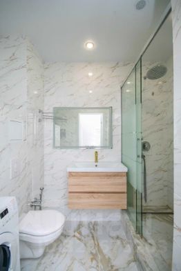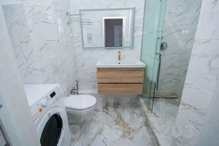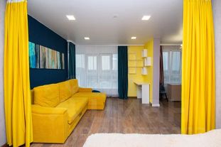 Квартира с дизайнерским ремонтом, который создает ощущение уюта и современного стиля. Пространство студии грамотно зонировано, что позволяет максимально эффективно использовать каждый квадратный метр. В квартире есть все необходимое для комфортной жизни: современная техника, включая встроенную кухонную технику - посудомоечная машина, варочная плита, духовой шкаф, холодильник, микроволновая печь. Санузел совмещенный и выполнен в светлых тонах с встроенным тропическим душем, зеркалом с подсветкой, гигиеническим душем и подвесным унитазом. Просторная кладовка.