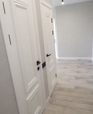 Белые межкомнатные двери с покрытием "Эмаль". Двери полнотелые, тяжелые, поэтому для надёжности и долговечности навешены на 3 петли.