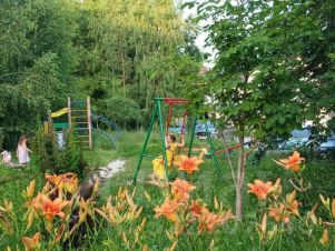 Двор тихий, спокойный, ухоженный, внутри двора детская оборудованная площадка, небольшой сквер, много деревьев, цветочных клумб. Во время дождей двор никогда не затапливается. Мусорная площадка находится в противоположной стороне двора от дома.