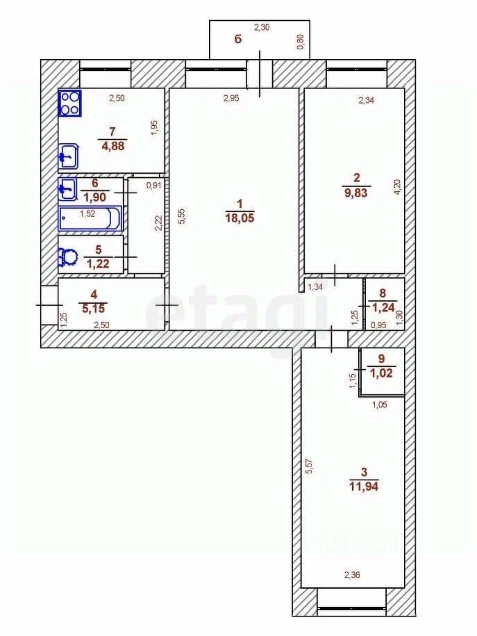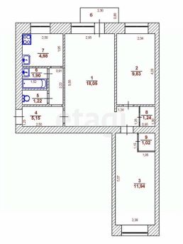 Квартира общей площадью 55,2 кв.м. и расположена на 5 этаже из 6.