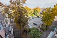 Санузел раздельный . Есть балкон, застеклен. Квартира -"распашонка", изолированные спальни, одни окна во двор, другие с видом на площадь Старого вокзала.