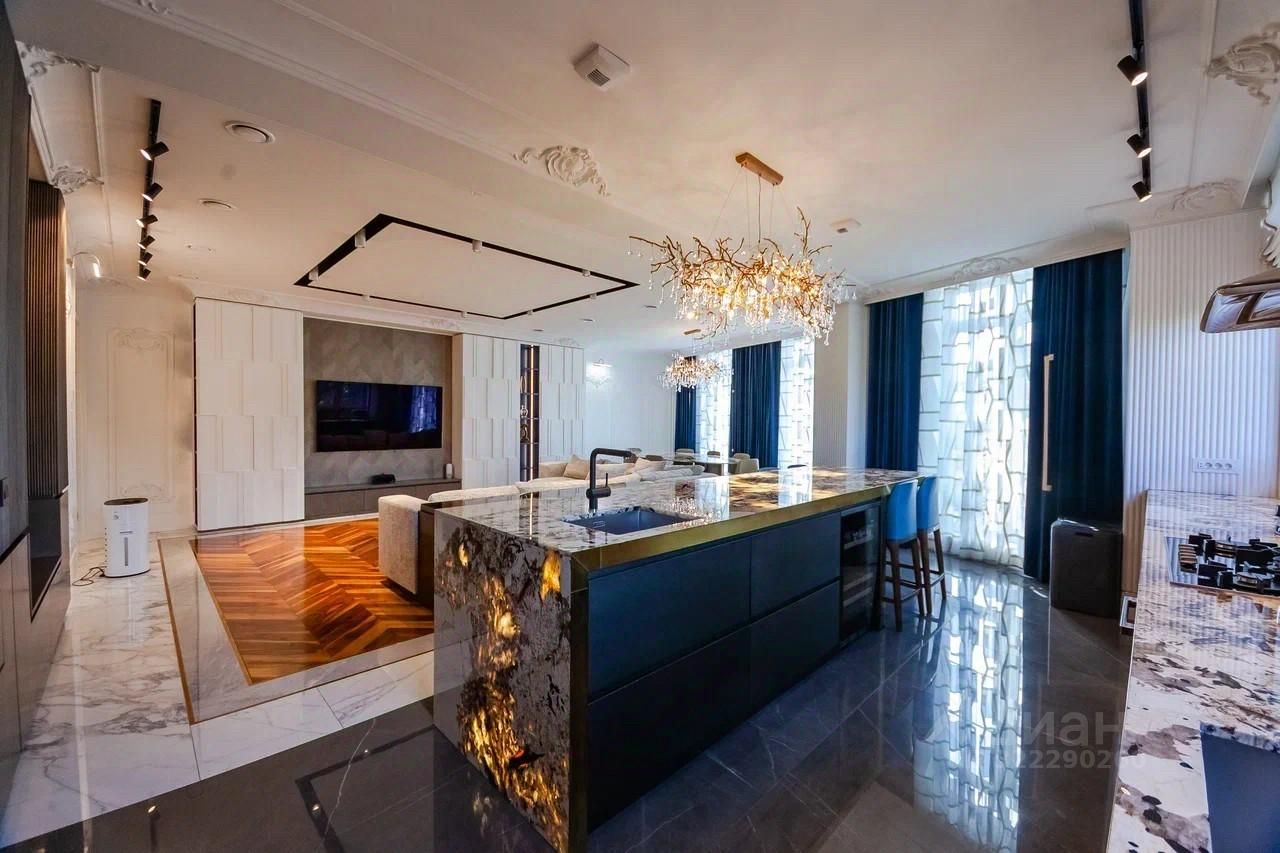 В квартире выполнена уникальная дизайнерская отделка высокого уровня с использованием натуральных материалов. Вся мебель, техника и сантехника лучших мировых брендов.